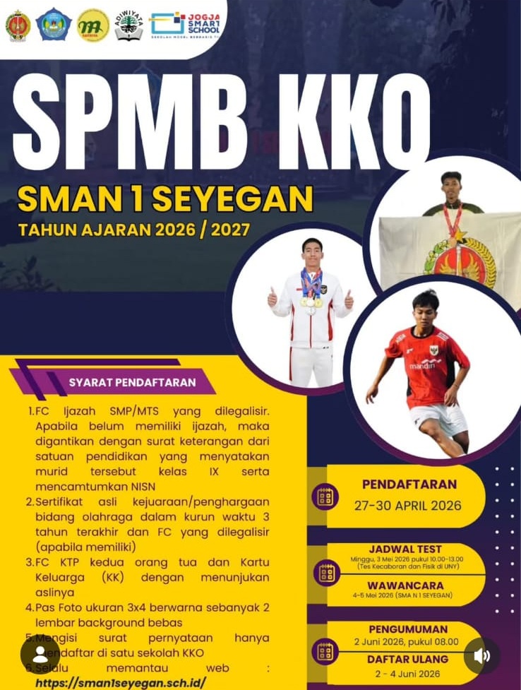 - Pengumuman dilaksanakan pada tanggal 10 Juni 2025 pukul 08.00 WIB di SMA Negeri 1 Seyegan atau secara online di website sekolah.
